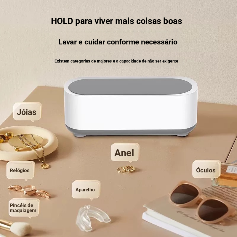 Limpador ultrassónico compacto para uso doméstico Limpeza totalmente automática para joias, relógios, estojos de óculos e acessórios escolares