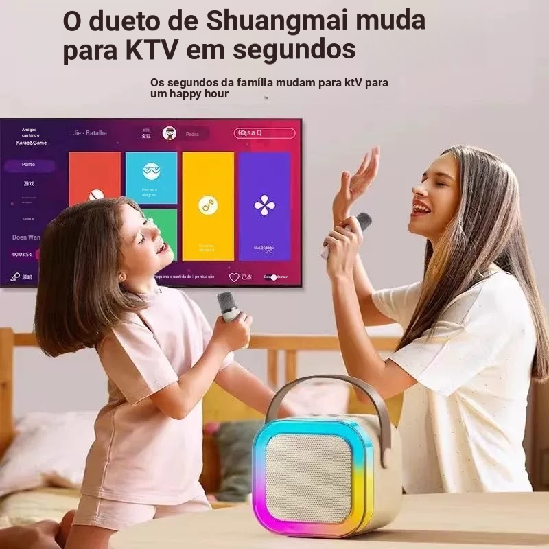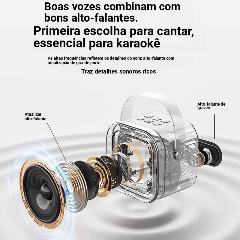 Alto-falante com microfone sem fios Bluetooth integrado para cantar – Alto-falante doméstico para karaoke para toda a família – Pequeno KTV doméstico